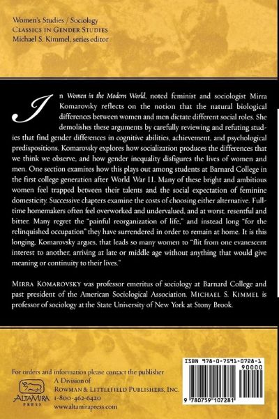 In Women in the Modern World, noted feminist and sociologist Mirra Komarovsky begins with a consideration of biology. Reflecting on these now-familiar arguments that the natural biological differences between women and men dictate different social roles, Komarovsky demolishes these arguments by carefully reviewing studies that find sex differences in cognitive abilities, achievement, and psychological predispositions.