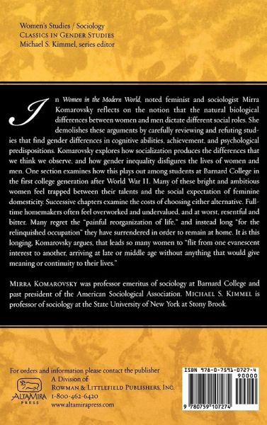 In Women in the Modern World, noted feminist and sociologist Mirra Komarovsky begins with a consideration of biology. Reflecting on these now-familiar arguments that the natural biological differences between women and men dictate different social roles, Komarovsky demolishes these arguments by carefully reviewing studies that find sex differences in cognitive abilities, achievement, and psychological predispositions.