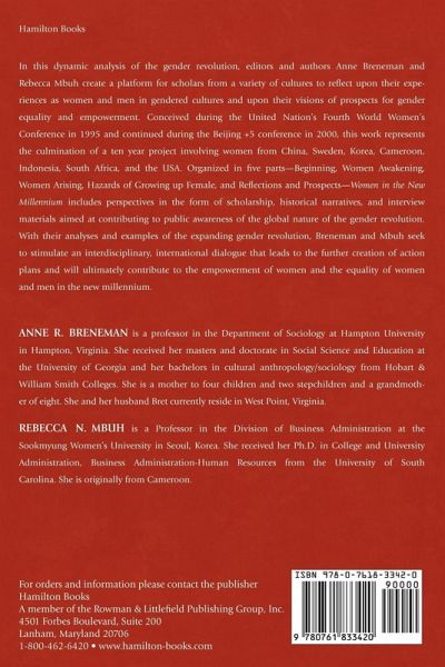 Anne R. Breneman is a professor in the Department of Sociology at Hampton University in Hampton, Virginia. She received her masters and doctorate in Social Science and Education at the University of Georgia and her bachelors in cultural anthropology / sociology from Hobart & William Smith Colleges. She is a mother to four children and two stepchildren and a grandmother of eight. She and her husband Bret currently reside in West Point, Virginia. Rebecca N. Mbuh is a Professor of business administration at Sookmyung Women's University, Seoul, Korea. She received her Ph.D. in higher education administration and human resources management from the University of South Carolina. In 2001, Dr. Mbuh conducted a yearlong research study on women managers in Cameroon and Indonesia. She is the author of several articles and book chapters on women's issues (particularly African women) and has presented numerous papers at conferences in America and internationally. Dr. Mbuh and her husband Mark reside in Seoul, Korea.