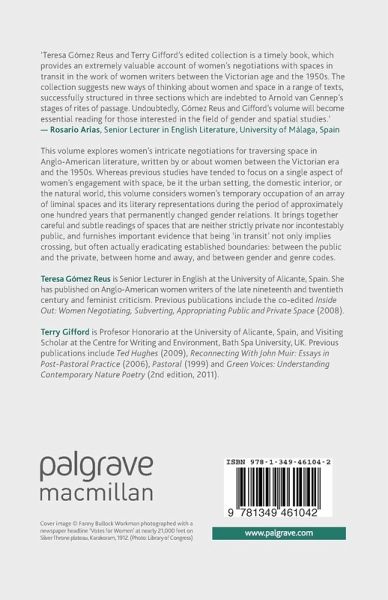 Teresa Gómez Reus and Terry Gifford's edited collection is a timely book, which provides an extremely valuable account of women's negotiations with spaces in transit in the work of women writers between the Victorian age and the 1950s. The collection suggests new ways of thinking about women and space in a range of texts, successfully structured in three sections which are indebted to Arnold Van Gennep's stages of rites of passage. Undoubtedly, Gómez Reus and Gifford's volume will become essential reading for those interested in the field of gender and spatial studies.