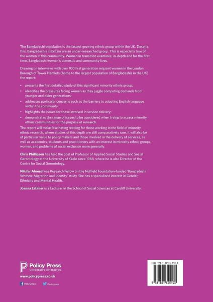 The Bangladeshi population is the fastest growing ethnic group within the UK. Despite this, Bangladeshis in Britain are an under-researched group. This is especially true of the women in this community. Women in transition examines, in-depth and for the first time, Bangladeshi women's domestic and community lives.