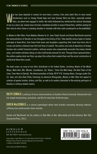 This companion volume to Reel Men at War takes a look at how women have been portrayed in war films, from silents of the 1920s to films of the twenty-first century. The authors explore the full range of women on the home front, covering nurses and doctors on the war front and women in combat. Films examined include Wings, A Farewell to Arms, Since You Went Away, So Proudly We Hail, Mrs. Miniver, A Guy Named Joe, The Best Years of Our Lives, From Here to Eternity, M*A*S*H, Coming Home, Aliens, G. I. Jane, Courage under Fire, Starship Troopers, Inglorious Basterds, and Zero Dark Thirty. This volume also includes an extensive filmography with brief assessments of how women are portrayed in each of these films.