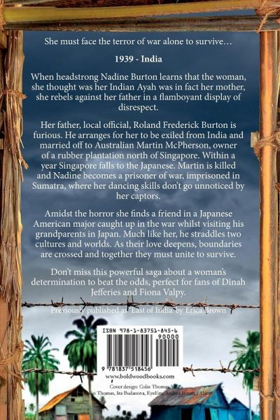 She must face the terror of war alone to survive... 1939 - India When headstrong Nadine Burton learns that the woman, she thought was her Indian Ayah was in fact her mother, she rebels against her father in a flamboyant display of disrespect and dares to dance with her two local best friends at a public party. Her father, local official, Roland Frederick Burton is furious. He arranges for her to be exiled from India and married off to Australian Martin McPherson, owner of a rubber plantation north of Singapore. Within a year Singapore falls to the Japanese. Martin is killed and Nadine becomes a prisoner of war, imprisoned in Sumatra, where her dancing skills don't go unnoticed by her captors. Amidst the horror she finds a friend in a Japanese American major caught up in the war whilst visiting his grandparents in Japan. Much like her, he straddles two cultures and worlds. As their love deepens, boundaries are crossed and together they must unite to survive. Don't miss this emotional and powerful saga about a woman's determination to beat the odds, perfect for fans of Dinah Jefferies and Fiona Valpy. Previously published as 'East of India' by Erica Brown
