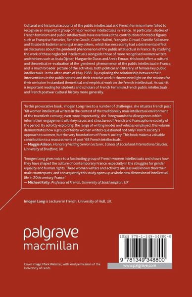 In this provocative book, Imogen Long rises to a number of challenges: she situates French post '68 women intellectual writers in the context of the traditionally male intellectual environment of the twentieth century; even more importantly, she foregrounds the divergences which inform their engagement with key issues and structures of French and Francophone society of the period. By adroitly exploiting the range of writing modes and vehicles employed, this volume demonstrates how a group of feisty women writers questioned not only French society's approach to women, but the very foundations of French society. This book makes a valuable contribution to a reassessment of post '68 French intellectuals.