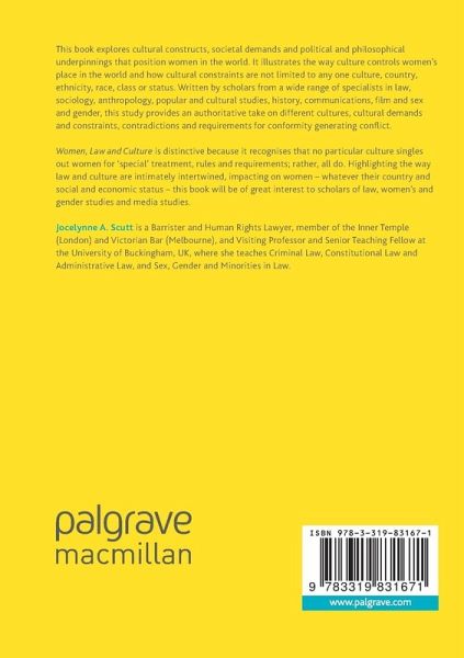 Women, Law and Culture is distinctive because it recognises that no particular culture singles out women for 'special' treatment, rules and requirements; rather, all do. Highlighting the way law and culture are intimately intertwined, impacting on women - whatever their country and social and economic status - this book will be of great interest to scholars of law, women's and gender studies and media studies.