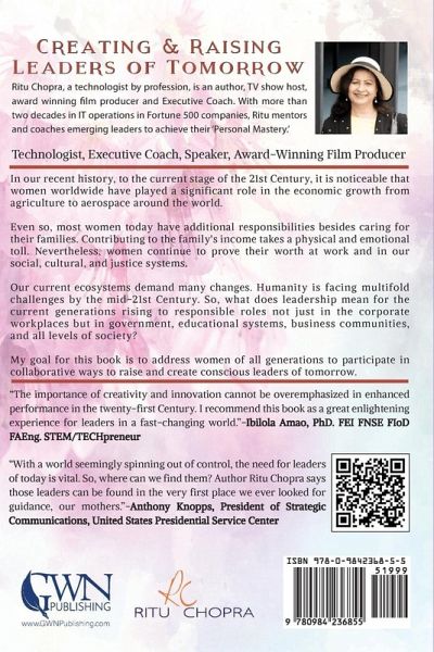 In our recent history, to the current stage of the 21st Century, it is noticeable that women worldwide have played a significant role in the economic growth from agriculture to aerospace around the world. ¿¿Even so, most women today have additional responsibilities besides caring for their families. Contributing to the family's income takes a physical and emotional toll. Nevertheless, women continue to prove their worth at work and in our social, cultural, and justice systems. Our current ecosystems demand many changes. Humanity is facing multifold challenges by the mid-21st Century. So, what does leadership mean for the current generations rising to responsible roles not just in the corporate workplaces but in government, educational systems, business communities, and all levels of society? My goal for this book is to address women of all generations to participate in collaborative ways to raise and create conscious leaders of tomorrow.