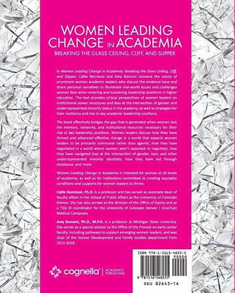In Women Leading Change in Academia: Breaking the Glass Ceiling, Cliff, and Slipper, a groundbreaking collection, Callie Rennison and Amy Bonomi convene the perspectives of diverse women academic leaders who discuss their rise to key leadership positions and effective change-making in higher education, despite underlying structural barriers and bias that disadvantage women. Contributors underscore the revolutionary power and innovation that women leaders bring to bear to improve upon business as usual in the academy--even in the "glass cliff" scenario when their risk of failure should be highest. Women across leadership positions--presidents, provosts, deans, and department chairs--discuss leading strategic planning, culture change, and navigating the "double bind," along with strategies for successful negotiation, networking, mentoring, and work-life balance. Contributors also underscore strategies for leading powerful innovation and change in the academy early in their careers when they do not hold formal leadership roles and experience marginalization due to their identity. Opening chapters examine institutional power structures, intersectionality, bias, along with enacting change-making leadership in spite of these barriers. Additional chapters offer insight on the power of mentorship, strategic networking for women in the academy, negotiation strategies, professional development and work-life. The collection addresses moving on, up or out of formal leadership in the academy, how to create institutional change, and strategies for rising, revolutionizing, and redoubling efforts to support women leaders. Women Leading Change in Academia is intended for women, allies, and institutions committed to equitable conditions for women leaders to be maximally impactful. The text is co-sponsored by Division 35 of the American Psychological Association, the Society for the Psychology of Women, an organizational base for all feminists, of all genders and of all national origins, who are interested in teaching, research, or practice in the psychology of womxn. Callie Rennison, Ph.D. is a professor and has served as associate dean of faculty affairs in the School of Public Affairs at the University of Colorado Denver. She has also served as the director of the Office of Equity and as a Title IX coordinator for the University of Colorado Denver Anschutz Medical Campuses. Amy Bonomi, Ph.D., M.P.H. is director of the Children and Youth Institute at Michigan State University. She serves as a special advisor to the Office of the Provost, co-administers MSU's Women's Leadership Institute, and was chair of the Human Development and Family Studies department from 2013-2019.