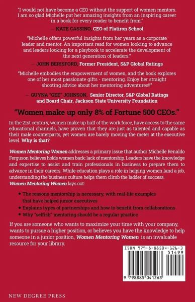 "Women make up only 8% of Fortune 500 CEOs." In the 21st century, women make up half of the workforce, have access to the same educational channels, and have proven that they are just as talented and capable as their male counterparts, yet women are barely moving the meter at the executive level. Why is that? Women Mentoring Women addresses a primary issue that author Michelle Renaldo Ferguson believes holds women back: lack of mentorship. High-level leaders have the knowledge and expertise to assist and train lower-level professionals in business to prepare them to advance in their careers. While education plays a role in helping women land a job, understanding the business culture helps them climb the ladder of success. Women Mentoring Women lays out: The reasons mentorship is necessary, with real-life examples that have helped junior executives Explains types of partnerships and how to benefit from collaborations Why "selfish" mentoring should be a regular practice If you are someone who wants to maximize your time with your company, wants to pursue a higher position, or believes you have the knowledge to help someone in a junior position, Women Mentoring Women is an invaluable resource for your library.