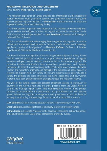 This book examines the migration of women as gendered subjects to and from Turkey, using feminist research practices to explore a range of diverse experiences of migrant women as refugees, asylum seekers, undocumented or documented migrants. The collection includes contributions from researchers, practitioners, and migrants themselves to present a nuanced analysis that challenges binary divisions between 'forced' and 'voluntary' migrants and highlights the political and social agency of refugee and migrant women in Turkey. Drawing on a rich body of original empirical and theoretical research the volume explores recent policy change in Turkey, the political and social influences that have shaped migration policy (both internally and globally), and how women migrants have been positioned within its changing refugee and migration regimes.