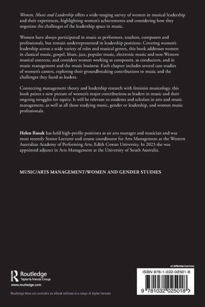 Women have always participated in music as performers, teachers, composers and professionals, but remain underrepresented in leadership positions. Covering women's leadership across a wide variety of roles and musical genres, this book addresses women in classical music, gospel, blues, jazz, popular music, electronic music and non-Western musical contexts, and considers women working as composers, as conductors, and in music management and the music business. Each chapter includes several case studies of women's careers, exploring their groundbreaking contributions to music and the challenges they faced as leaders.