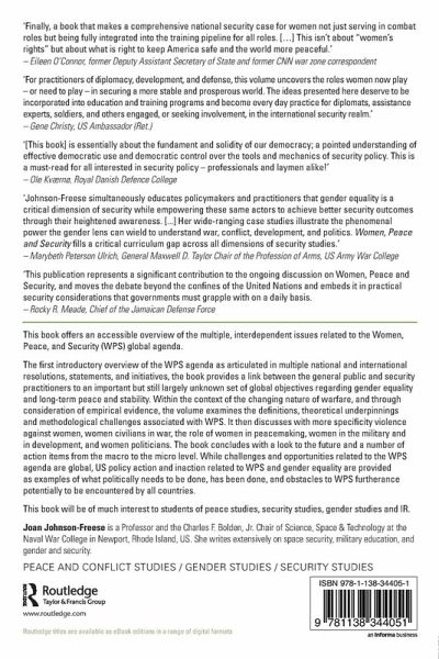 'Joan Johnson-Freese simultaneously educates policymakers and practitioners that gender equality is a critical dimension of security while empowering these same actors to achieve better security outcomes through their heightened awareness. The reader is treated to an interdisciplinary feast of gender and feminist theory explored and applied in a security context. Her wide-ranging case studies illustrate the phenomenal power the gender lens can wield to understand war, conflict, development, and politics. Women, Peace and Security fills a critical curriculum gap across all dimensions of security studies.' - Marybeth Peterson Ulrich, General Maxwell D. Taylor Chair of the Profession of Arms, US Army War College