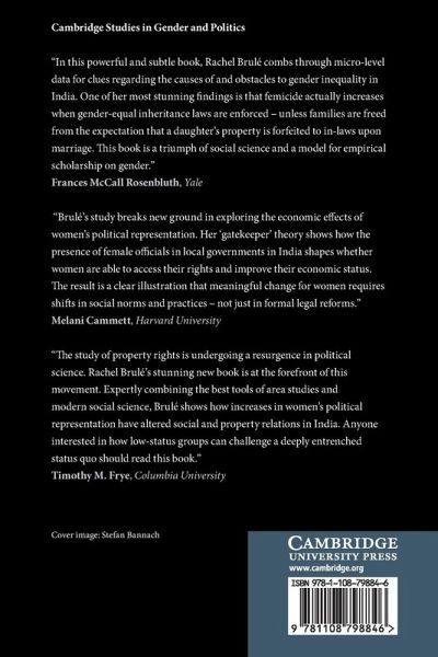 1. Introduction 2. A theory of political representation and economic agency 3. Property and power: a political history of the Hindu joint family 4. Where are the women? Investigating reform's roots 5. The politics of property rights enforcement 6. The long arm of resistance: refusal to care for parents 7. Representation and violence: gender equality and sex selection 8. Conclusion.