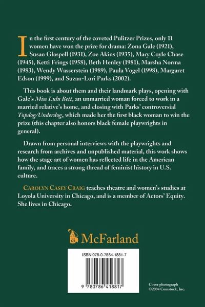 In the first century of the coveted Pulitzer Prizes, only 11 women have won the prize for drama: Zona Gale (1921), Susan Glaspell (1931), Zoe Akins (1935), Mary Coyle Chase (1945), Ketti Frings (1958), Beth Henley (1981), Marsha Norma (1983), Wendy Wasserstein (1989), Paula Vogel (1998), Margaret Edson (1999), and Suzan-Lori Parks (2002). This book is about them and their landmark plays, beginning with Gale's Miss Lulu Bett, which championed the unmarried woman forced to work in the home of a married relative, and closing with Parks' controversial Topdog/Underdog, which made her the first black woman to win the prize. Drawn from personal interviews with the playwrights and research from archives and unpublished material, this work shows how the stage art of women has reflected life in the American family and traces a strong thread of feminist history in our culture. Overview chapters set the stage for each playwright and play with sketches of the time period, highlighting the major points of women's experiences in culture, society and the family. Other chapters analyze each play in detail and discuss the playwright's life and opinions. The book also includes a quick history of the Pulitzer Prize and a chapter honoring black female playwrights.