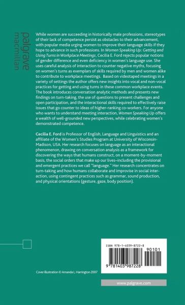 "Cecilia Ford's Women Speaking Up is a refreshing look at the linguistic competency of women in the workplace...In what could otherwise be a daunting array of research participants and transcripts, the book makes excellent use of organizational keys, typographical indicators, and line drawings to organize data and help the reader follow along. This is thoughtful, nuanced, sophisticated work that avoids prescriptive findings or reductive applications...we should applaud Ford's commitment to making the methods and theoretical contributions of conversation analysis so accessible and to thereby allow women and men from all academic disciplines to celebrate women's agency."