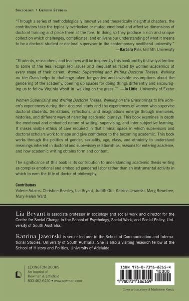 1. Introduction: Daring to Walk on the Grass Lia Bryant and Katrina Jaworski 2. Honor Bound Lia Bryant 3. Passionate Activism as Academic Labour: The Emotional Body of Pedagogical Politics Christine Beasley and Katrina Jaworski 4. 'Cutting the Mustard': Standing your Ground in the Process of Producing Doctoral Dissertations Judith Gill 5. Stuck Between Two Languages: The Ethics of Writing a Doctoral Dissertation in the English Language Katrina Jaworski 6. Caring Labor and Caringscapes at the Margins of Academic Work Valerie Adams 7. Safe to Feel Vulnerable: The Emotional Space of the Doctoral Supervisory Relationship Marg Rowntree 8. The Liminal Space of PhD Candidature: Becoming Doctor Mary-Helen Ward 9. Conclusion: Walking on the Grass 84 Years Later Katrina Jaworski and Lia Bryant