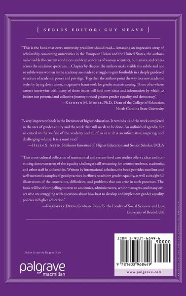 'This is the book that every university president should read. Amassing an impressive array of scholarship concerning universities in the European Union and the United States, the authors make visible the current conditions and deep concerns of women scientists, humanists, and others across the academic spectrum. Chapter by chapter the authors make visible the subtle and not-so-subtle ways women in the academy are made to struggle to gain footholds in a deeply gendered structure of academic power and privilege. Together, the authors point the way to a new academic order by laying down a new, imaginative framework for gender mainstreaming. Those of us whose careers intertwine with many of these issues will find new ideas and information by which to bolster our personal and collective journey toward greater gender equality and democracy.' - Kathryn M. Moore, Ph.D., dean of the College of Education, North Carolina State University
