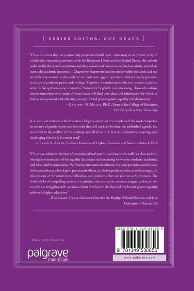 'This cross-cultural collection of institutional and system-level case studies offers a clear and convincing demonstration of the equality challenges still remaining for women students, academics, and other staff in universities. Written by international scholars, the book provides excellent and well-narrated examples of good practices in efforts to achieve gender equality, as well as insightful illustrations of the constraints, difficulties, and problems that can arise in such processes. The book will be of compelling interest to academics, administrators, senior managers, and many others who are struggling with questions about how best to develop and implement gender equality policies in higher education.' - Rosemary Deem, graduate dean for the Faculty of Social Sciences and Law, University of Bristol, UK