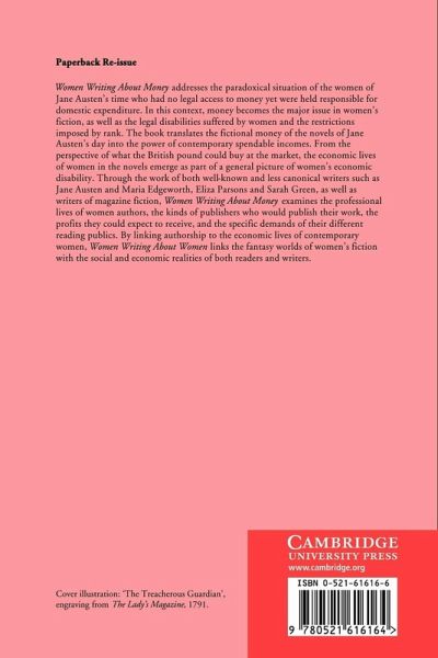 This study addresses a paradox in the lives of women in Jane Austen's time who had no legal access to money yet were held responsible for domestic expenditure. The book translates the fictional money of the novels of Jane Austen's day into the power of contemporary spendable incomes, and from the perspective of what the British pound could buy at the market, the economic lives of women in the novels emerge as part of a general picture of women's economic disability. Through the work of writers such as Austen and Edgeworth, as well as those of magazine fiction, the author examines the professional lives of women authors, their publishers, their profits, and the demands of their reading public. By linking authorship to the economic lives of contemporary women, Women Writing About Money links the fantasy worlds of women's fiction with the social and economic realities of both readers and writers.