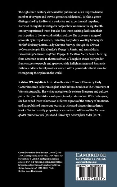 The eighteenth century witnessed the publication of an unprecedented number of voyages and travels, genuine and fictional. Within a genre distinguished by its diversity, curiosity, and experimental impulses, Katrina O'Loughlin investigates not just how women in the eighteenth century experienced travel, but also how travel writing facilitated their participation in literary and political culture. She canvases a range of accounts by intrepid women, including Lady Mary Wortley Montagu's Turkish Embassy Letters, Lady Craven's Journey through the Crimea to Constantinople, Eliza Justice's A Voyage to Russia, and Anna Maria Falconbridge's Narrative of Two Voyages to the River Sierra Leone. Moving from Ottoman courts to theatres of war, O'Loughlin shows how gender frames access to people and spaces outside Enlightenment and Romantic Britain, and how travel provides women with a powerful cultural form for re-imagining their place in the world.