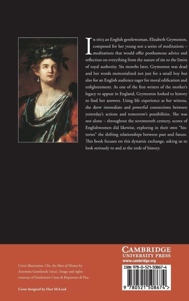 In 1603 an English gentlewoman, Elizabeth Grymeston, composed for her young son a series of meditations - meditations that would offer posthumous advice and reflection on everything from the nature of sin to the limits of royal authority. Six months later Grymeston was dead and her words memorialized not just for a small boy but also for an English audience eager for moral edification and enlightenment. As one of the first writers of the mother's legacy to appear in England, Grymeston looked to history to find her answers. Using life experience as her witness, she drew immediate and powerful connections between yesterday's actions and tomorrow's possibilities. She was not alone - throughout the seventeenth century, scores of Englishwomen did likewise, exploring in their own 'histories' the shifting relationships between past and future. This book focuses on this dynamic exchange, asking us to look seriously at the ends of history.