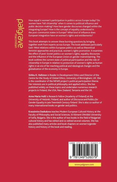 Combining research, theory and practice, pan-European perspectives and the disciplines of human rights, sociology and politics, this book offers a rare insight into the multiplicity of issues surrounding women's equality, citizenship and political rights in transitional Europe and an expanding European Union. From policy-making to civil rights, domestic violence and education, experienced authors present innovative research, analysis and suggestions for the future of women as participants in an evolving Europe.