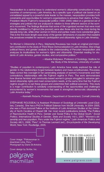 "Studies of populism in contemporary Latin America have rarely explored the role of gender in the relationships forged between leaders and mass constituencies. Rousseau helps correct this oversight in her penetrating analysis of women s movements and their contradictory relationships with the Fujimori regime in Peru. The work demonstrates how diverse feminist and community-based women s groups struggled to advance gendered citizenship rights and meet consumption needs, at the same time that the Fujimori regime sought to co-opt these groups and undermine their political autonomy. This study is a major contribution to scholarly understanding of the opportunities and challenges encountered by women s movements that seek to strengthen democratic citizenship in Latin America today." - Kenneth Roberts, Professor, Department of Government, Cornell University