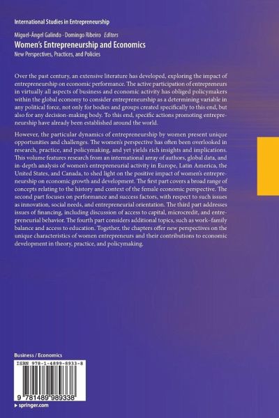 However, the particular dynamics of entrepreneurship by women present unique opportunities and challenges. The women's perspective has often been overlooked in research, practice, and policymaking, and yet yields rich insights and implications. This volume features research from an international array of authors, global data, and in-depth analysis of women's entrepreneurial activity in Europe, Latin America, the United States, and Canada, to shed light on the positive impact of women's entrepreneurship on economic growth and development. The first part covers a broad range of concepts relating to the history and context of the female economic perspective. The second part focuses on performance and success factors, with respect to such issues as innovation, social needs, and entrepreneurial orientation. The third part addresses issues of financing, including discussion of access to capital, microcredit, and entrepreneurial behavior. The fourth part considers additional topics, such as work-family balance and access to education. Together, the chapters offer new perspectives on the unique characteristics of women entrepreneurs and their contributions to economic development in theory, practice, and policymaking.