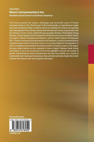 This book presents the nature, challenges and successful cases of female entrepreneurship in Iran. The first part of the book provides a comprehensive insight into Iran's entrepreneurship ecosystem and its accessibility for women by exploring and analyzing data from relevant national and international sources, in particular from the Statistical Center of Iran, Global Entrepreneurship Monitor, World Bank (Doing Business, Gender Equality and Development), World Economic Forum (Global Gender Gap Report, Global Competitiveness Report), and the United Nations Development Plan. Trends in entrepreneurial perceptions and intentions, as well as developments in entrepreneurial activity in Iran from 2008 to 2013, are also studied for both genders. In order to establish a benchmark for the relative position of Iranian women in the region, the main related indices are also compared to those in Egypt, Pakistan, Saudi Arabia and Turkey. In turn, the second part of the book highlights selected rolemodels of growth-oriented female Iranian entrepreneurs who have successfully run a variety of traditionally male-dominated businesses in Iran and internationally, despite the hostile business environment and various gender stereotypes.