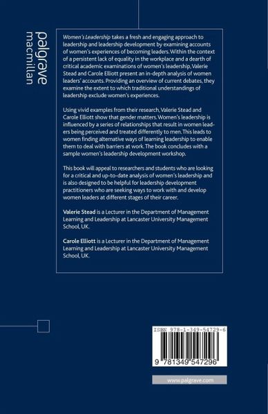 Women's Leadership challenges traditional concepts of leadership that draw on the male experience and offers an alternative construction that emerges from the female experience. Highlighting leadership's social, cultural and political roots, the authors argue that leadership is neither a free floating nor a gender neutral concept.