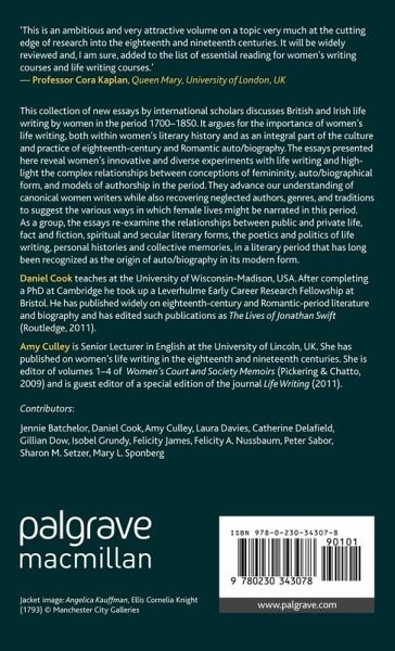 "This is an ambitious and very attractive volume on a topic very much at the cutting edge of research in the 18th and 19th century, which will be widely reviewed and, I am sure, added to the list of essential reading for women's writing courses and life writing courses." Cora Kaplan, Emeritus Professor of English, University of Southampton, UK