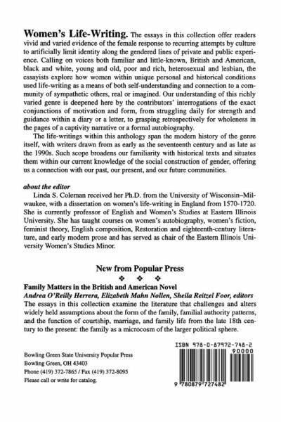 These essays offer readers vivid and varied evidence of the female response to recurring attempts by culture to artificially limit identity along the gendered lines of private and public experience. Calling on voices both familiar and little known, British and American, black and white, young and old, the essayists explore how women used life-writing as a means of both self-understanding and connection to a community of sympathetic others, real or imagined.