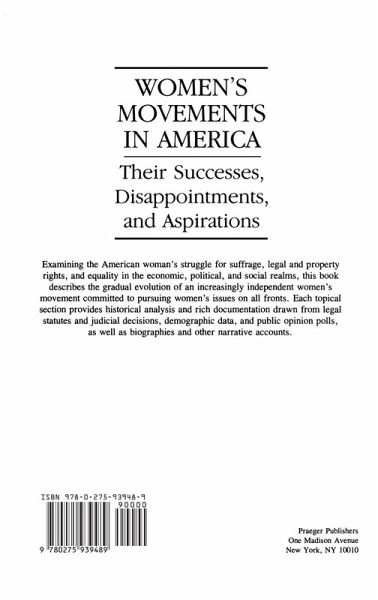 This work is a survey of the efforts through which women have changed their place in American society from the nation's founding to the present. Examining the historical struggle for suffrage, legal and property rights, and rights in the work place, the authors show how these experiences have shaped a contemporary movement for economic, political, and social equality that has become increasingly independent and less and less likely to place women's issues second to other national concerns. The authors recount a history of women activists who repeatedly set aside their own issues in favor of others that seemed more pressing--from abolition and preserving the Union, to labor solidarity in the 1920s, and civil rights and the New Left in the 1960s and 1970s. Male domination of these movements and a lack of support for women's issues have been major factors in creating the contemporary feminist philosophy of going it alone. The book is divided into three topical sections, each of which offers a historical analysis and draws on a variety of sources such as legal statutes and judicial decisions, demographic information, public opinion polls, and biographies and other narrative accounts. It is a richly documented resource for courses and research in women's studies, sociology, politics, and U.S. legal and political history.