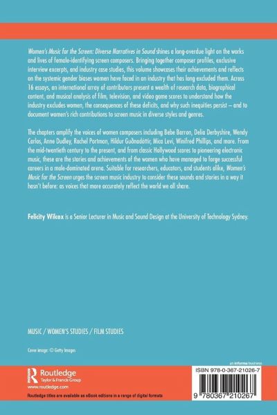The chapters amplify the voices of women composers including Bebe Barron, Delia Derbyshire, Wendy Carlos, Anne Dudley, Rachel Portman, Hildur Guðnadóttir, Mica Levi, Winifred Phillips, and more. From the mid-twentieth century to the present, and from classic Hollywood scores to pioneering electronic music, these are the stories and achievements of the women who have managed to forge successful careers in a male-dominated arena. Suitable for researchers, educators, and students alike, Women's Music for the Screen urges the screen music industry to consider these sounds and stories in a way it hasn't before: as voices that more accurately reflect the world we all share.