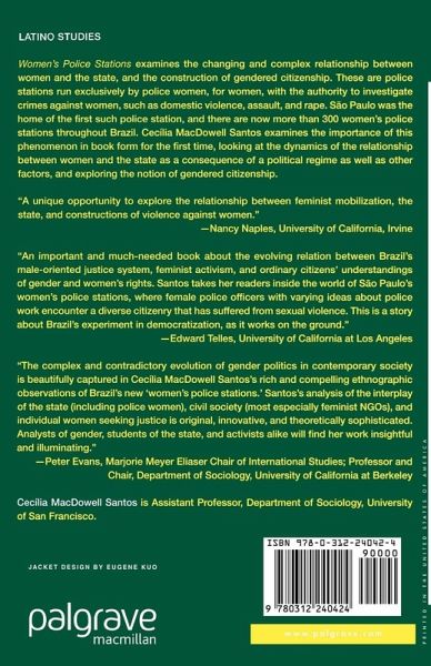 Women's Police Stations examines the changing and complex relationship between women and the state, and the construction of gendered citizenship, using women's police stations in Sao Paulo. These are police stations run exclusively by police women for women with the authority to investigate crimes against women such as domestic violence, assault and rape. Sao Paulo was the home of the first such police station, and there are now more than 250 women's police stations throughout Brazil. Cecilia MacDowell Santos examines the importance of this phenomenon for the first time, looking at the dynamics of the relationship between women and the state as a consequence of a political regime, and exploring the notion of gendered citizenship.