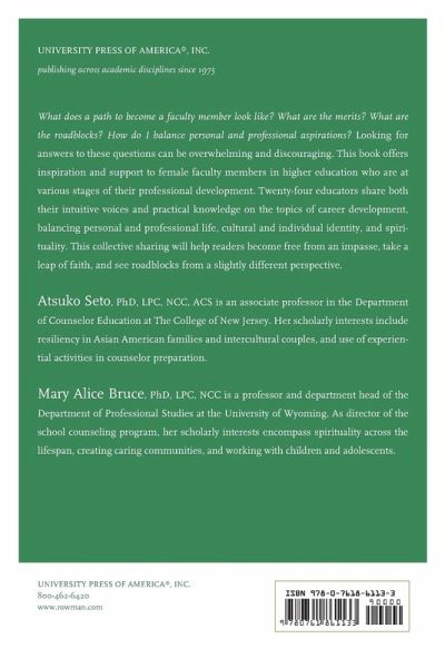 Contents Preface Acknowledgments Section One: Career Development Chapter 1. Parallel Play at the Mad Hatter's Tea House: Writing-In-Relation Chapter 2. Passionate About Teaching Chapter 3. A Photograph of Women in Academe: "Dr. Mom" Chapter 4. Mentoring: Authentic Connections and Pathways Section Two: Balancing Personal and Professional Life Chapter 5. Dancing Backward in High Heels: Balancing Traditionally Male Academia within Feminine Life Chapter 6. Professional Expectations and Partnership: Perspectives from the Beginning, Middle, and End Chapter 7. Can You Have It All? The Competing Worlds of Women Balancing Motherhood With an Academic Career in Counselor Education Chapter 8. Balancing Personal Life and Career Chapter 9. Living in Two Worlds: Personal Perspectives in the Long-Distance Commuter Relationship Section Three: Cultural and Individual Identity Chapter 10. Transitions: A Woman on the Move! Chapter 11. Fostering Inclusivity in Counselor Education for Culturally Diverse Women Chapter 12. Leaving Home: Relationships and Experiences of a Lifetime Chapter 13. An Agnostic in Full Bloom Section Four: Spirituality Chapter 14. Centrality of the Relationship in Counselor Education: Our Clients, Our Students, Ourselves Chapter 15. Weaving a Life Fabric-Faith, Family, and Career Chapter 16. Soul Work: Who Am I? What Do I Stand For? Where Am I Going? Index About the Authors Contents