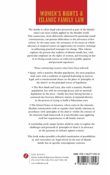 The family is where legal rules presented as part of the Islamic shari`a are most widely applied in the Muslim world. This connection, often differently elaborated by particular social constituencies, can present difficulties to the advocates of law reform. At the same time, the resonance of the issues at which advocacy is targeted creates an opportunity for creative exchange in addressing practical strategies for change. This volume explores the present-day realities of Islamic family law, with particular emphasis on the rights of women, and focusing on law in its living social context as reflected in public opinion and personal experience. A concluding study ranges further afield in order to explore the challenges and potential of 'principles of shari`a' in advocacy on the question of violence against women. This book makes possible a detailed examination of possibilities of, and constraints on, legal reform in the area of Islamic family law in specific contemporary contexts.