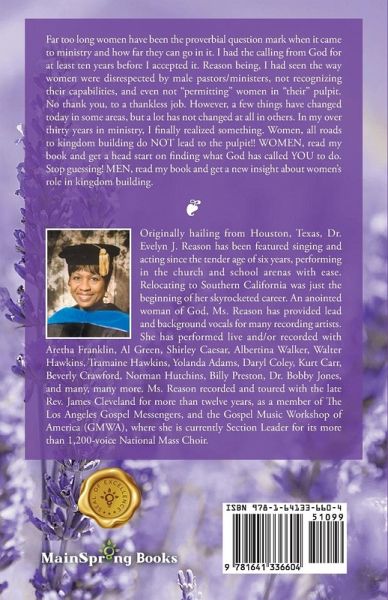 Far too long women have been the proverbial question mark when it came to ministry and how far they can go in it. I had the calling from God for at least ten years before I accepted it. Reason being, I had seen the way women were disrespected by male pastors/ministers, not recognizing their capabilities, and even not "permitting" women in "their" pulpit. No thank you, to a thankless job. However, a few things have changed today in some areas, but a lot has not changed at all in others. In my over thirty years in ministry, I finally realized something. Women, all roads to kingdom building do NOT lead to the pulpit!! WOMEN, read my book and get a head start on finding what God has called YOU to do. Stop guessing! MEN, read my book and get a new insight about women's role in kingdom building.