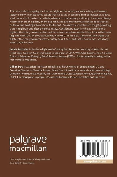 This book is about mapping the future of eighteenth-century women's writing and feminist literary history, in an academic culture that is not shy of declaring their obsolescence. It asks: what can or should unite us as scholars devoted to the recovery and study of women's literary history in an era of big data, on the one hand, and ever more narrowly defined specialization, on the other? Leading scholars from the UK and US answer this question in thought-provoking, cross-disciplinary and often polemical essays. Contributors attend to the achievements of eighteenth-century women writers and the scholars who have devoted their lives to them, and map new directions for the advancement of research in the area. They collectively argue that eighteenth-century women's literary history has a future, and that feminism was, and always should be, at its heart. Featuring a Preface by Isobel Grundy, and a Postscript by Cora Kaplan.