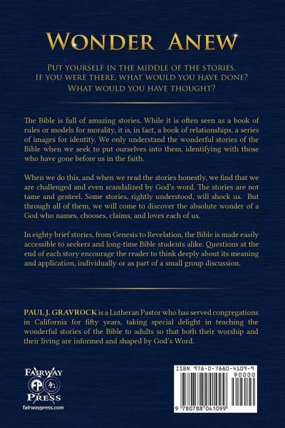 Put yourself in the middle of the storiesIf you were there, what would you have done? What would you have thought?The Bible is full of amazing stories. While it is often seen as a book of rules or models for morality, it is, in fact, a book of relationships, a series of images for identity.We only understand the wonderful stories of the Bible when we seek to put ourselves into them, identifying with those who have gone before us in the faith. When we do this, and when we read the stories honestly, we find that we are challenged and even scandalized by God's word. The stories are not tame and genteel. Some stories, rightly understood, will shock us. But through all of them, we will come to discover the absolute wonder of a God who names, chooses, claims, and loves each of us.In eighty brief stories, from Genesis to Revelation, the Bible is made easily accessible to seekers and long-time Bible students alike.Questions at the end of each story encourage the reader to think deeply about its meaning and application, individually or as part of a small group discussion.