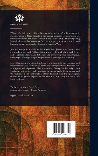 "Wonderful Adventures of Mrs. Seacole in Many Lands" is the remarkable autobiography of Mary Seacole, a pioneering Jamaican woman whose life transcended racial and social barriers in the 19th century. This compelling historical narrative recounts Seacole's experiences as a nurse and businesswoman, most notably during the Crimean War. Journey alongside Seacole as she travels from Jamaica to Panama and eventually to the battlefields of Crimea, where she tirelessly provided care and comfort to soldiers. Her dedication and unwavering spirit shine through these pages, offering a unique perspective on a pivotal period in history. More than just a war story, this book is a testament to the resilience and resourcefulness of a woman who defied societal expectations. Seacole's own words paint a vivid portrait of her adventures, offering valuable insights into Caribbean history, the challenges faced by women in the Victorian era, and the realities of life on the front lines of war. This meticulously prepared print edition allows you to experience firsthand the captivating story of a true historical figure. This work has been selected by scholars as being culturally important, and is part of the knowledge base of civilization as we know it. This work is in the public domain in the United States of America, and possibly other nations. Within the United States, you may freely copy and distribute this work, as no entity (individual or corporate) has a copyright on the body of the work. Scholars believe, and we concur, that this work is important enough to be preserved, reproduced, and made generally available to the public. We appreciate your support of the preservation process, and thank you for being an important part of keeping this knowledge alive and relevant.