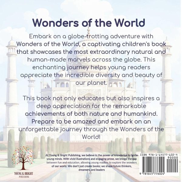 Embark on a globe-trotting adventure with Wonders of the World, a captivating children's book that showcases the most extraordinary natural and human-made marvels across the globe. This enchanting journey helps young readers appreciate the incredible diversity and beauty of our planet. This book not only educates but also inspires a deep appreciation for the remarkable achievements of both nature and humankind. Prepare to be amazed and embark on an unforgettable journey through the Wonders of the World!