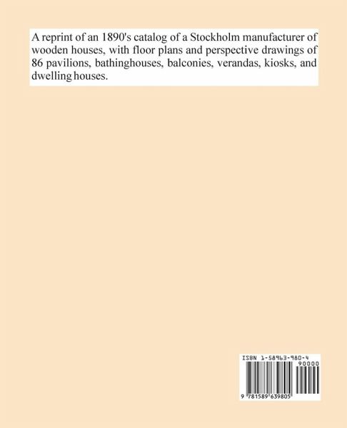 A reprint of an 1890's catalog of a Stockholm manufacturer of wooden houses, with floor plans and perspective drawings of 86 pavilions, bathinghouses, balconies, verandas, kiosks, and dwelling houses.