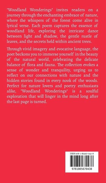 "Woodland Wonderings" invites readers on a journey through the enchanting embrace of nature, where the whispers of the forest come alive in lyrical verse. Each poem captures the essence of woodland life, exploring the intricate dance between light and shadow, the gentle rustle of leaves, and the secrets held within ancient trees. Through vivid imagery and evocative language, the poet beckons you to immerse yourself in the beauty of the natural world, celebrating the delicate balance of flora and fauna. The collection evokes a sense of wonder and tranquility, urging us to reflect on our connections with nature and the hidden stories found in every nook of the woods. Perfect for nature lovers and poetry enthusiasts alike, "Woodland Wonderings" is a soulful exploration that will linger in the mind long after the last page is turned.