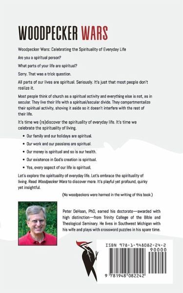Do you think of church as a religious activity and everything else as worldly? Do you divide Christian actions from secular ones? It's time to stop doing things that shove Christ away from some parts of your life. In Woodpecker Wars, Peter DeHaan shares personal stories from his family, work, and practices to reveal how we can see God at work in all facets of our being. In this book, you'll explore the ever-presence of Jesus in: Your family and your holidays Your work and your passions Your money and your priorities Your health and your recreation All of creation, including woodpeckers! To live a fulfilled life, it's time to rediscover that everything has a faith element. Celebrate living to the fullest by exploring the biblical spirituality in all aspects of your existence. Let's embrace the sacredness of living. Read Woodpecker Wars to discover more. It's playful yet profound, quirky yet insightful. Uncover soul-changing insights you can apply to your daily activities to embrace God's ever-present role in your reality. Then you can enjoy a more holistic, balanced, and rewarding existence. Get Woodpecker Wars today to embrace Christianity in all parts of your life! (No woodpeckers were harmed while writing this book.)