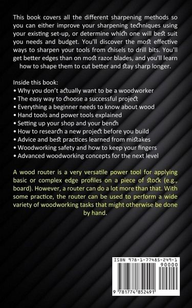 This book covers all the different sharpening methods so you can either improve your sharpening techniques using your existing set-up, or determine which one will best suit you needs and budget. You'll discover the most effective ways to sharpen your tools from chisels to drill bits. You'll get better edges than on most razor blades, and you'll learn how to shape them to cut better and stay sharp longer. Inside this book: ¿ Why you don't actually want to be a woodworker ¿ The easy way to choose a successful project ¿ Everything a beginner needs to know about wood ¿ Hand tools and power tools explained ¿ Setting up your shop and your bench ¿ How to research a new project before you build ¿ Advice and best practices learned from mistakes ¿ Woodworking safety and how to keep your fingers ¿ Advanced woodworking concepts for the next level A wood router is a very versatile power tool for applying basic or complex edge profiles on a piece of stock (e.g., board). However, a router can do a lot more than that. With some practice, the router can be used to perform a wide variety of woodworking tasks that might otherwise be done by hand.