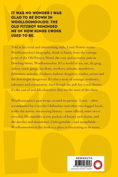 It was no wonder I was glad to be down in Woolloomooloo. The Old Fitzroy reminded me of how Kings Cross used to be. Told in his vivid and entertaining style, Louis Nowra writes Woolloomooloo's biography, drink in hand, from the vantage point of the Old Fitzroy Hotel, the cosy, eccentric and wonderful pub on Dowling Street, Woolloomooloo. It's a world of sex, sin, sly grog, sailors, razor gangs, larrikins, workers, artisans, murderers, fishermen, activists, drinkers, fashion designers, tradies, artists and the downright dangerous. It's also a story of courage, resilience, tolerance, compassion. And though the pub has a real theatre, it's the cast of real-life characters that are the stars of this show. Woolloomooloo's past wraps around its present. Louis - often accompanied by Coco the Chihuahua and other two-legged locals, often walks the streets, uncovering history - some official, some never revealed. He stumbles across pockets of beauty and charm, and the derelict and abandoned. Unforgettable - and unspellable - Woolloomooloo in this book is a place as fascinating as its name.