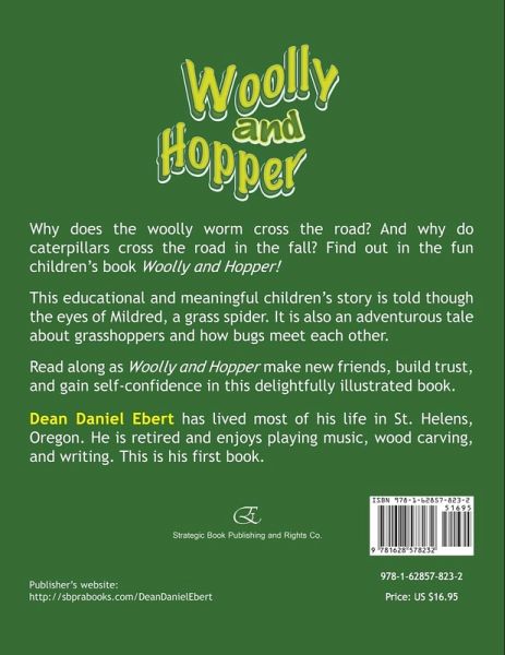 Why does the woolly worm cross the road? And why do caterpillars cross the road in the fall? Find out in the fun children's book Woolly and Hopper!This educational and meaningful children's story is told though the eyes of Mildred, a grass spider. It is also an adventurous tale about grasshoppers and how bugs meet each other.Read along as Woolly and Hopper make new friends, build trust, and gain self-confidence in this delightfully illustrated book. Dean Daniel Ebert has lived most of his life in St. Helens, Oregon. He is retired and enjoys playing music, wood carving, and writing. This is his first book.