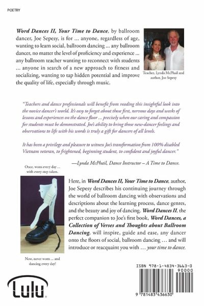 Word Dances II, Your Time to Dance, by ballroom dancer, Joe Sepesy, is for ... anyone, regardless of age, wanting to learn social, ballroom dancing ... any ballroom dancer, no matter the level of proficiency and experience ... any ballroom teacher wanting to reconnect with students ... anyone in search of a new approach to fitness and socializing, wanting to tap hidden potential and improve the quality of life, especially through music.