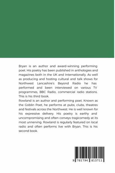 Word dancing is a book of poetry by Bryan Griffin, radio broadcaster, award winning performing poet and author & Rowland Crowland performing poet and author who both reside in the Morecambe Bay area. Their poetry has been regularly broadcast on radio and as well known live performers they regularly make guest appearances in venues and events across the North West Lancashire and South Lakeland areas. Word Dancing is their first collaboration and is an imaginative poetic journey from horror to humour and all in between.