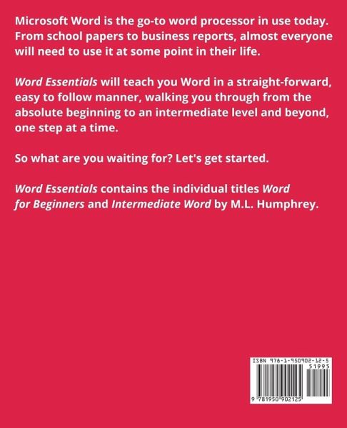 Microsoft Word is the go-to word processor in use today. From school papers to business reports, almost everyone will need to use it at some point in their life. Word Essentials will teach you Word in a straight-forward, easy to follow manner, walking you through from the absolute beginning to an intermediate level and beyond, one step at a time. So what are you waiting for? Let's get started. Word Essentials contains the individual titles Word for Beginners and Intermediate Word by M.L. Humphrey.